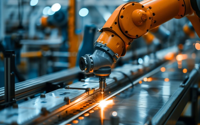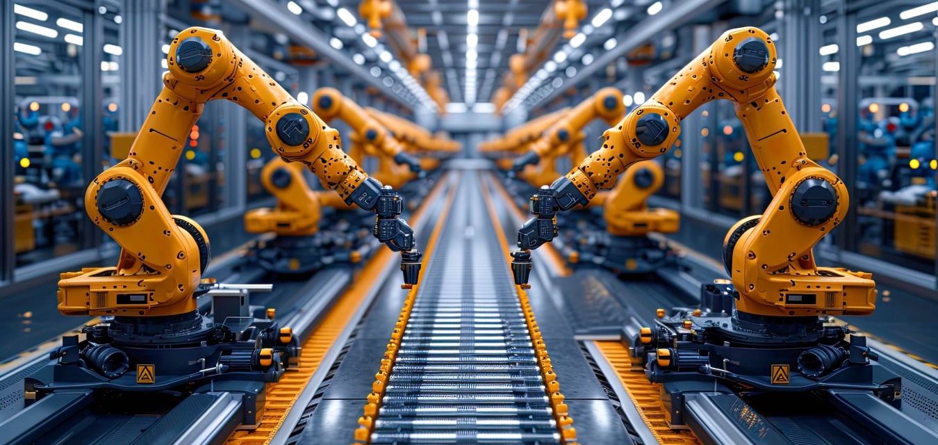 Factory smart industry robot arms digital production